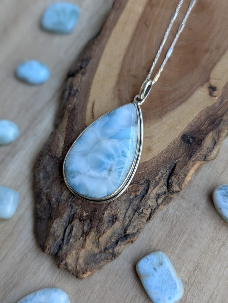 שרשרת ענקית מושלמת! בסגנון בוהו הורס ובדיוק בזמן לקיץ. גודל התליון ללא הלולאה כ4 על 2.6 ס”מ ואורך השרשרת כ50 ס”מ. השרשרת עשויה כסף 925 ואבן לרימר טבעית, בעבודת יד מלאה
