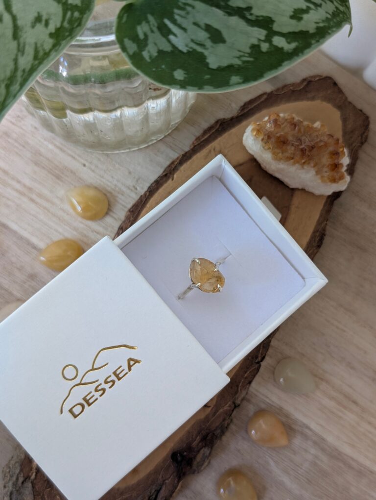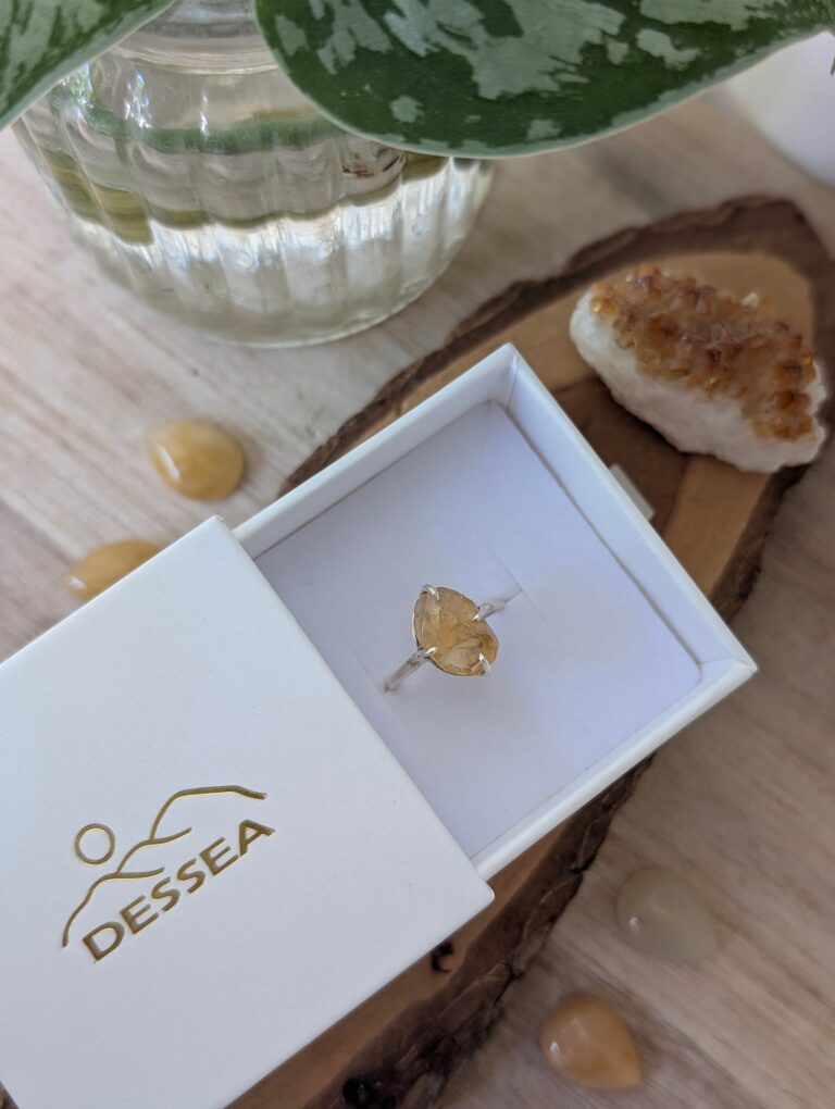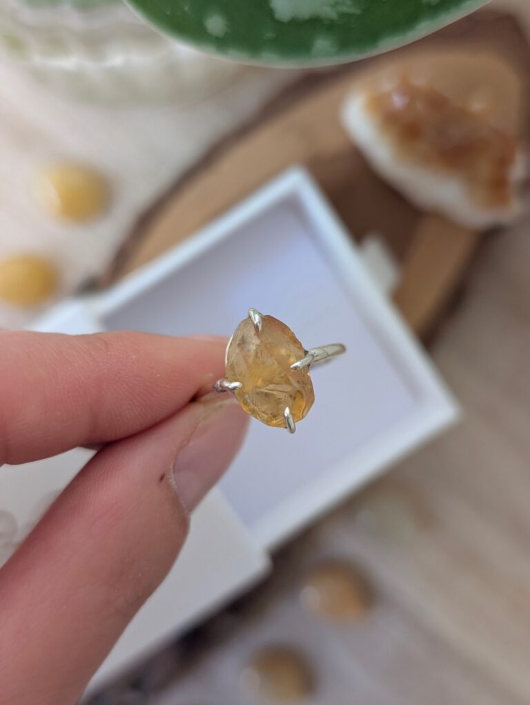 טבעת קלאסית מהממת! עשויה כסף 925 ואבן סיטרין גולמית במראה לא מוחלק.