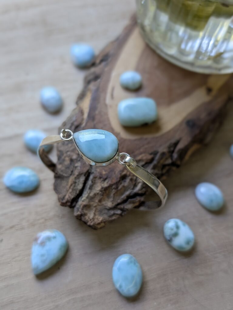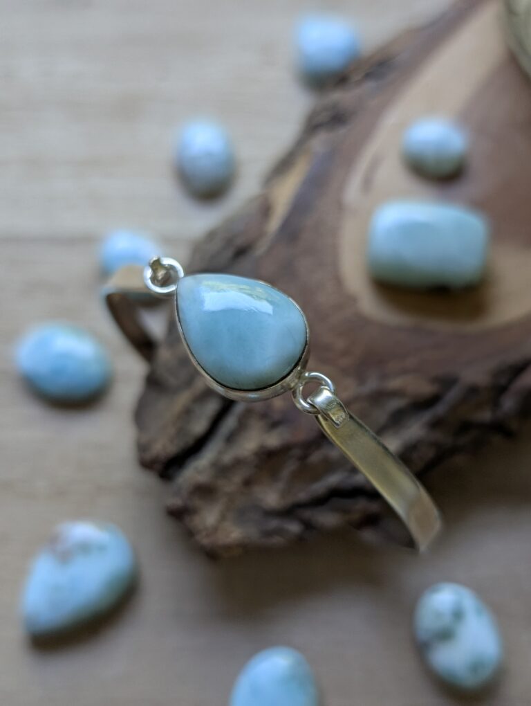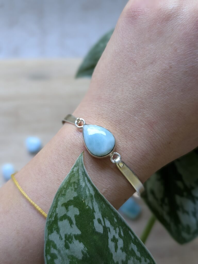 צמיד קשיח מושלם! עשוי כסף 925 ואבן לרימר טבעית בעיצוב בייסיק מהמם.