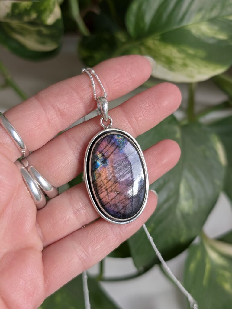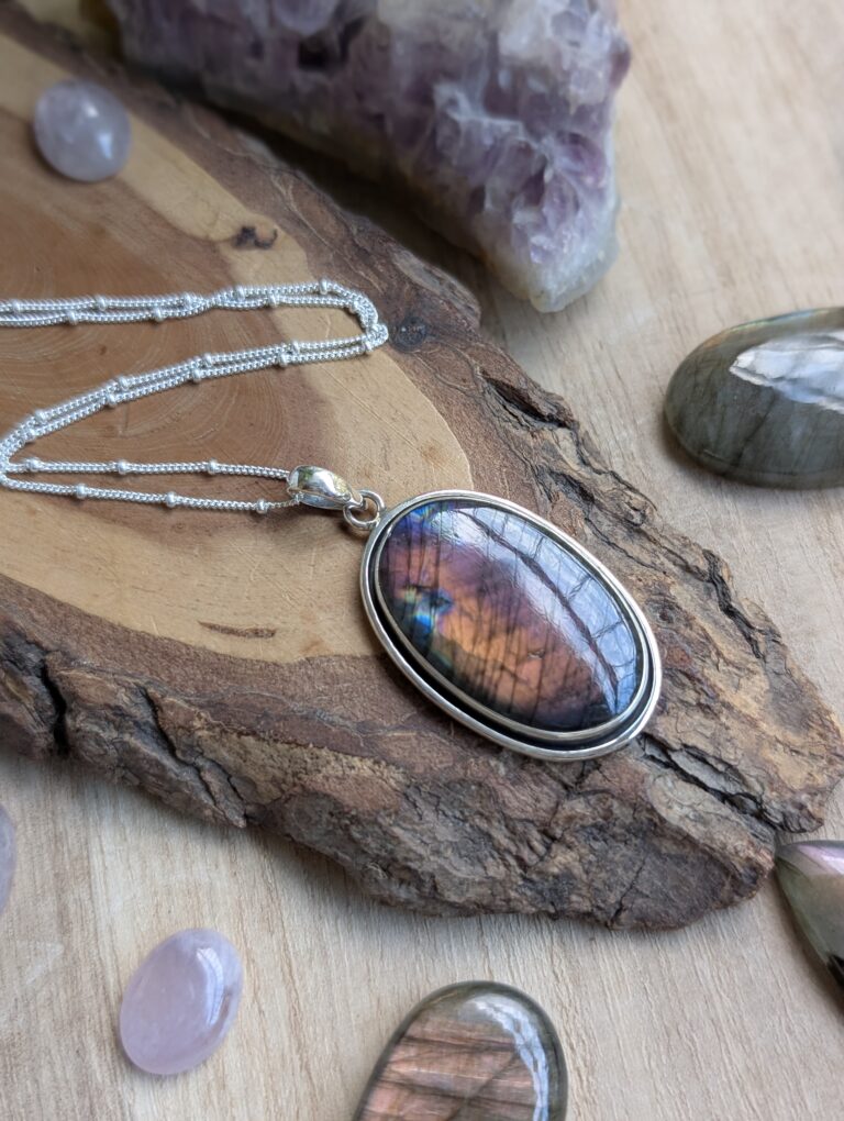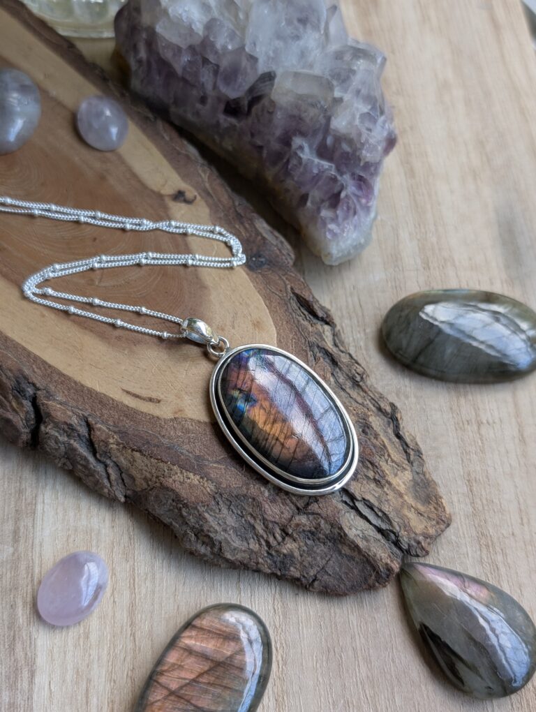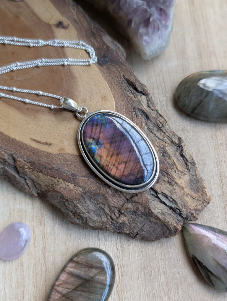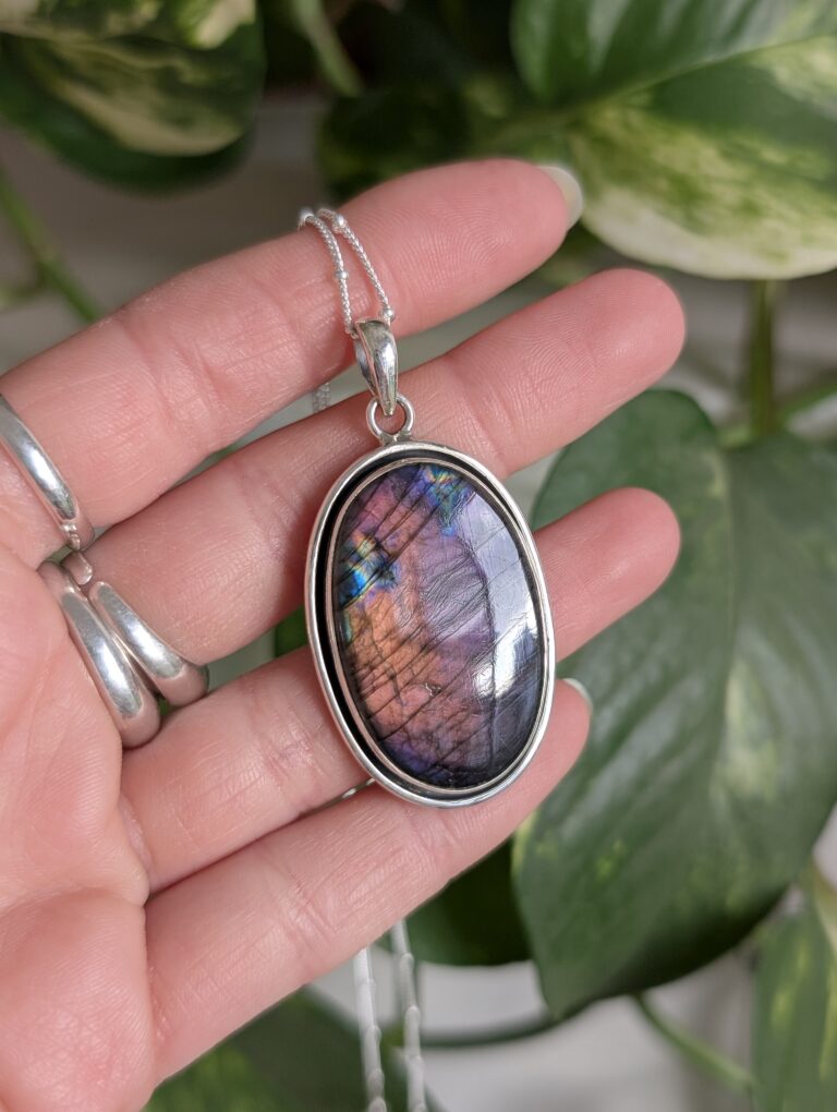 שרשרת לברדורייט גדולה ומושלמת! עשויה כסף 925 ואבן לברדורייט טבעית נדירה, הכי יפה באור השמש!