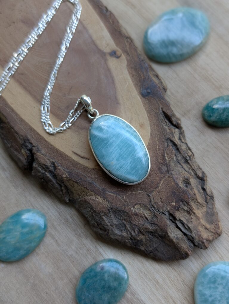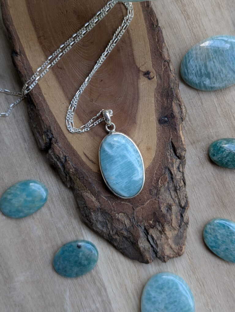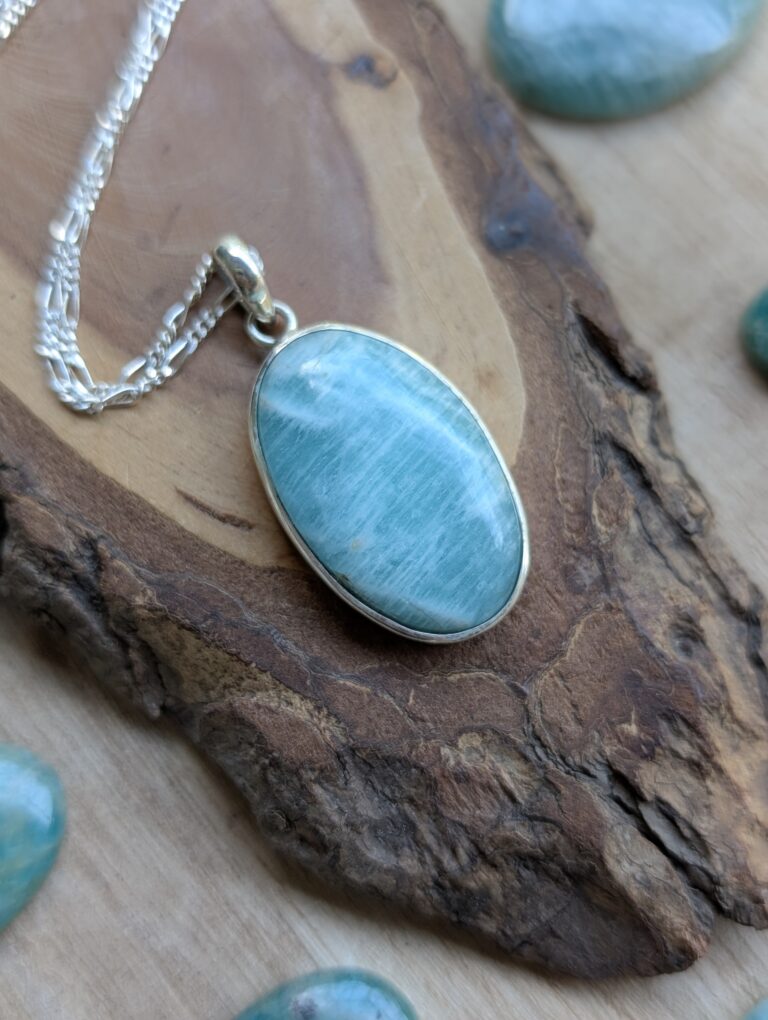 שרשרת בוהו שלמות! עשויה כסף 925 ואבן אמזונייט טבעית.