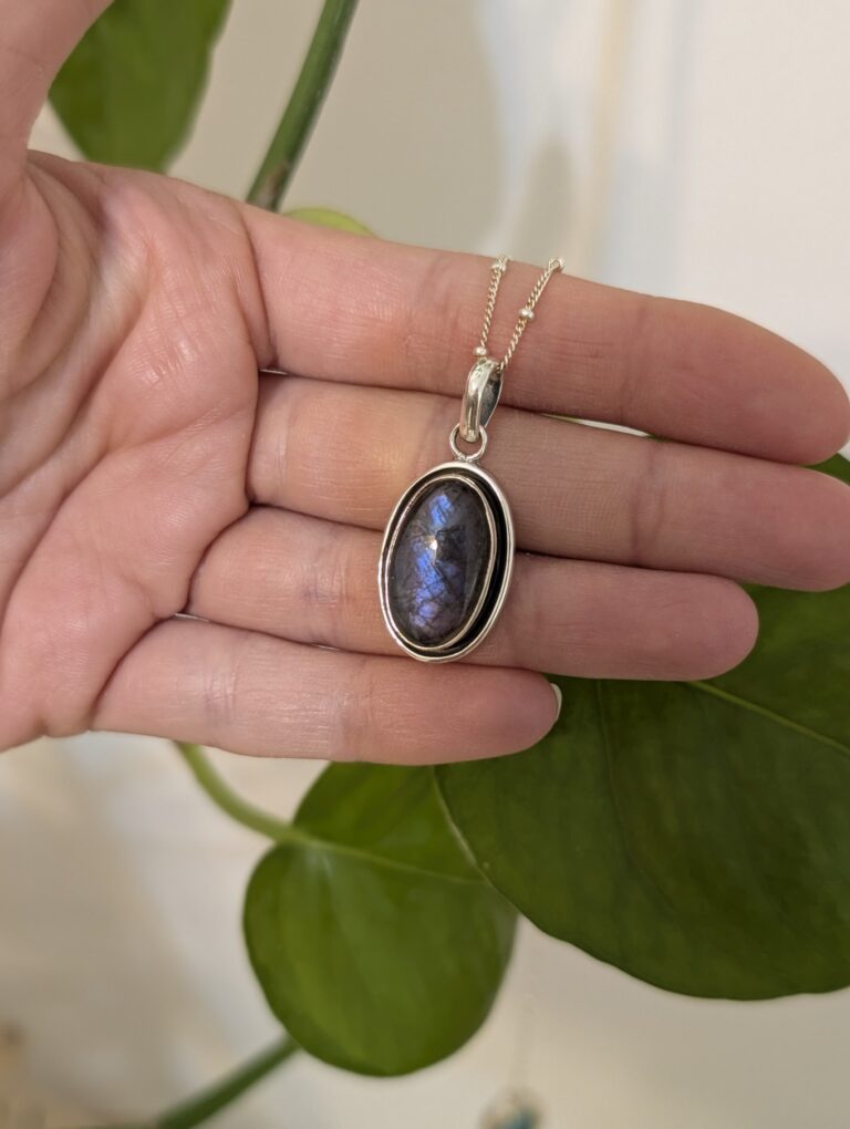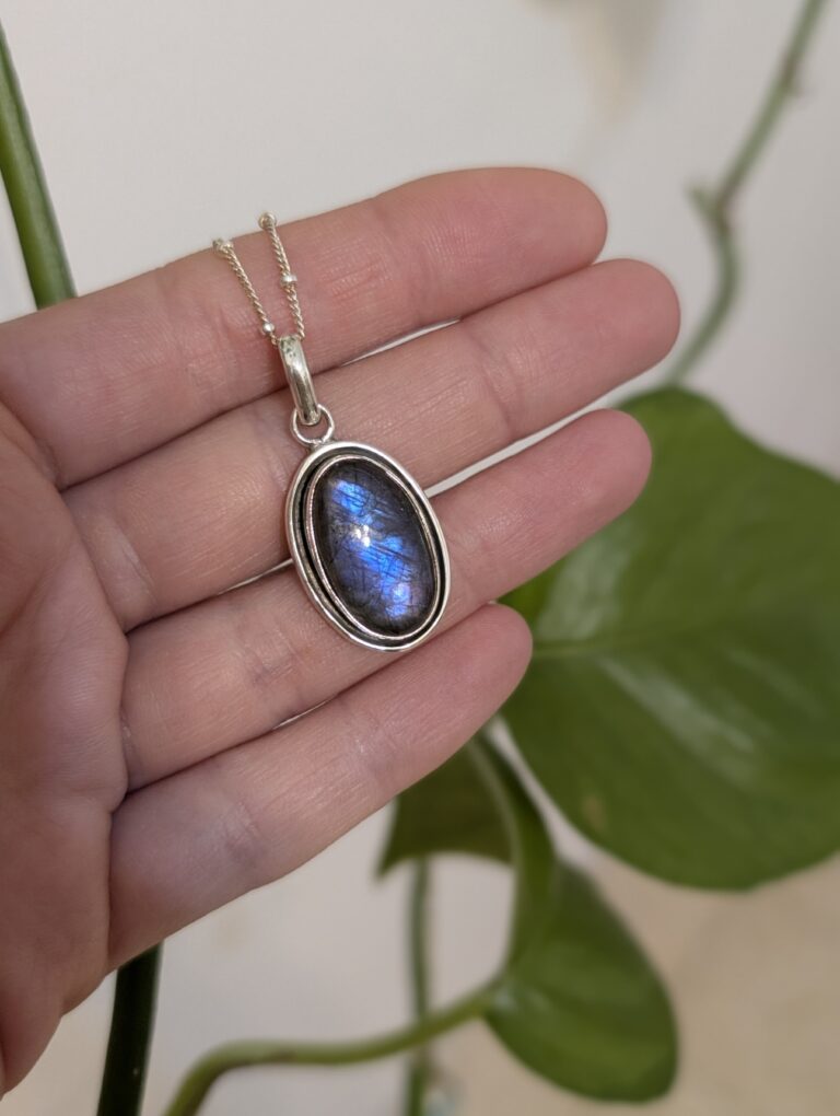 שרשרת לברדורייט גדולה ומושלמת! עשויה כסף 925 ואבן לברדורייט טבעית נדירה, הכי יפה באור השמש!